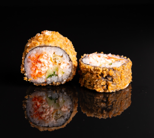 краб, масаго, рис, омлет, огурец, кляр