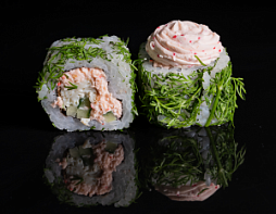укроп, краб, омлет, огурец, соус кимчи, сыр творожный, масаго красная